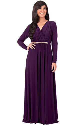 Koh Koh Womens Long Sleeve Sleeves Kaftan V Neck Flowy Kaftan Dress For Wedding Guest