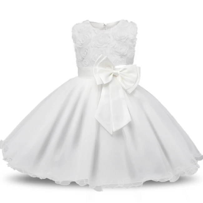 Kid Clothing White Flower Bridal Wedding Party Dress For Girls Kids White Wedding Dresses