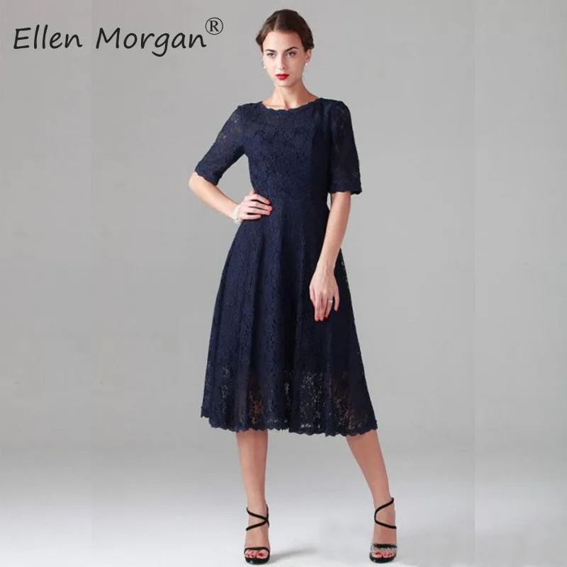 Dark Navy Blue Lace Short Mother Of The Bride Dress One Shoulder Knee Length Navy Blue Dresses For Wedding