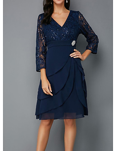 Knee Length Long Sleeved Lace Wedding Guest Dress Knee Length Navy Blue Wedding Guest Dress