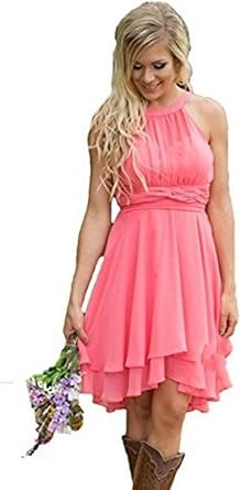 Formaldresses Knee Length Country Short Bridesmaid Dress Party Knee Length Peach Dress For Wedding Guest