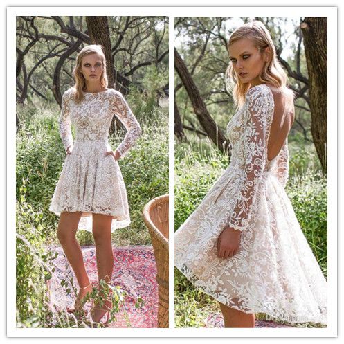 Compare 1905 S Vintage White Short Wedding Dress Long Sleeve Lace Knee Length Wedding Dress With Detachable Skirt
