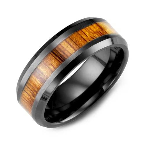 Madani Men S Beveled Koa Wood Ceramic Wedding Ring Lugaro Koa Wedding Ring