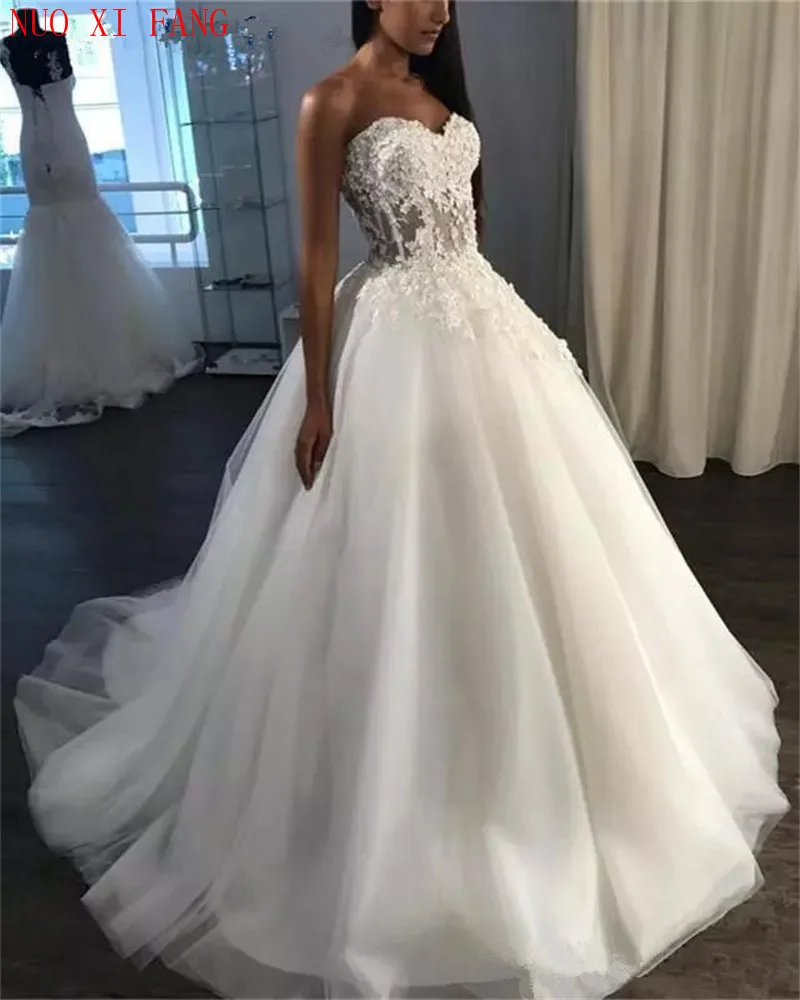 Vestido De Noiva Sweetheart A Line Wedding Dress Corset Back Sweep Lace A Line Sweetheart Wedding Dress