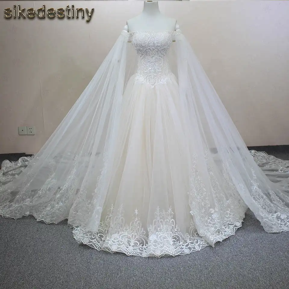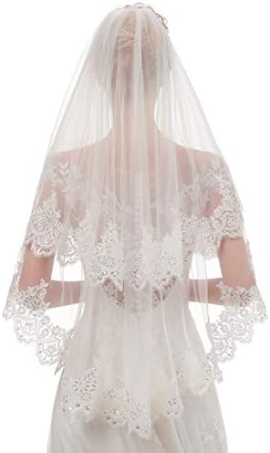 Ava Lace Edge Ivory One Tier Cathedral Wedding Veil Floor Length Lace A Line Wedding Dress With Veil
