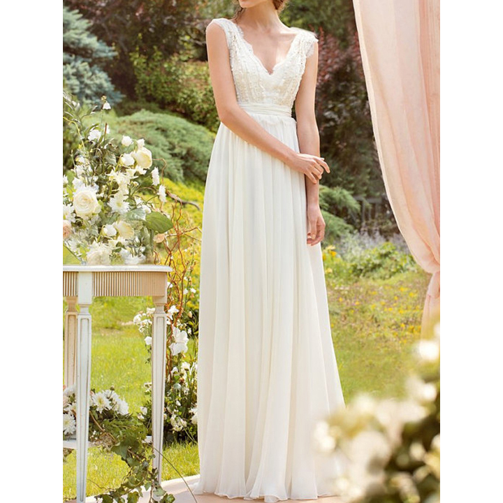 2017 Summer Beach Lace Chiffon Wedding Dresses Sweep Train White Lace And Chiffon Wedding Dress