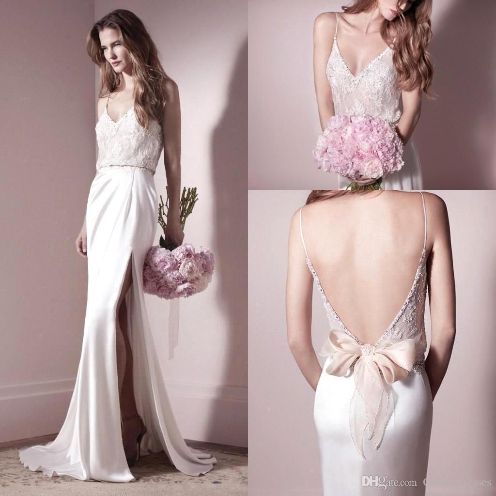 Short Sleeve V Neck Lace Sheath Wedding Dresses Low Back Satin Lace Bridal Gown With Belt Factory Custom Made Real Photo Dress Hand Dress Bridal Gowngown Shawl Lace And Satin Sheath Wedding Dress