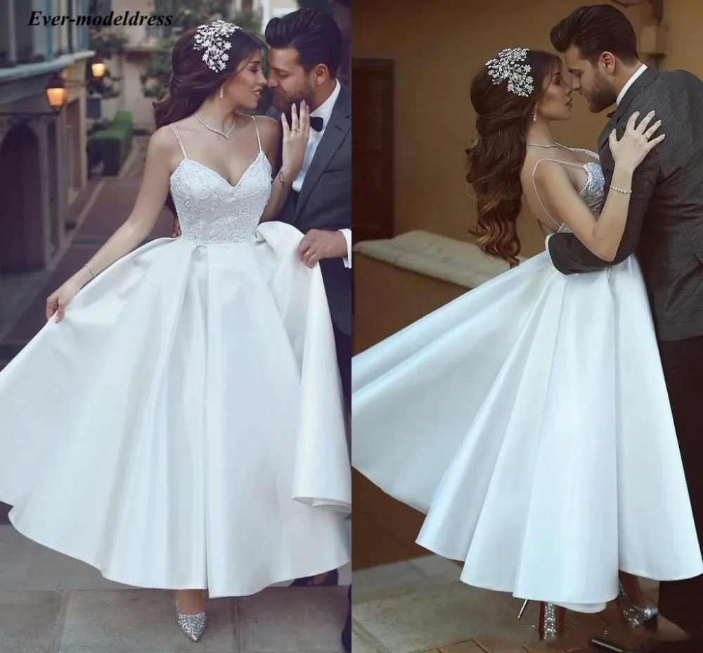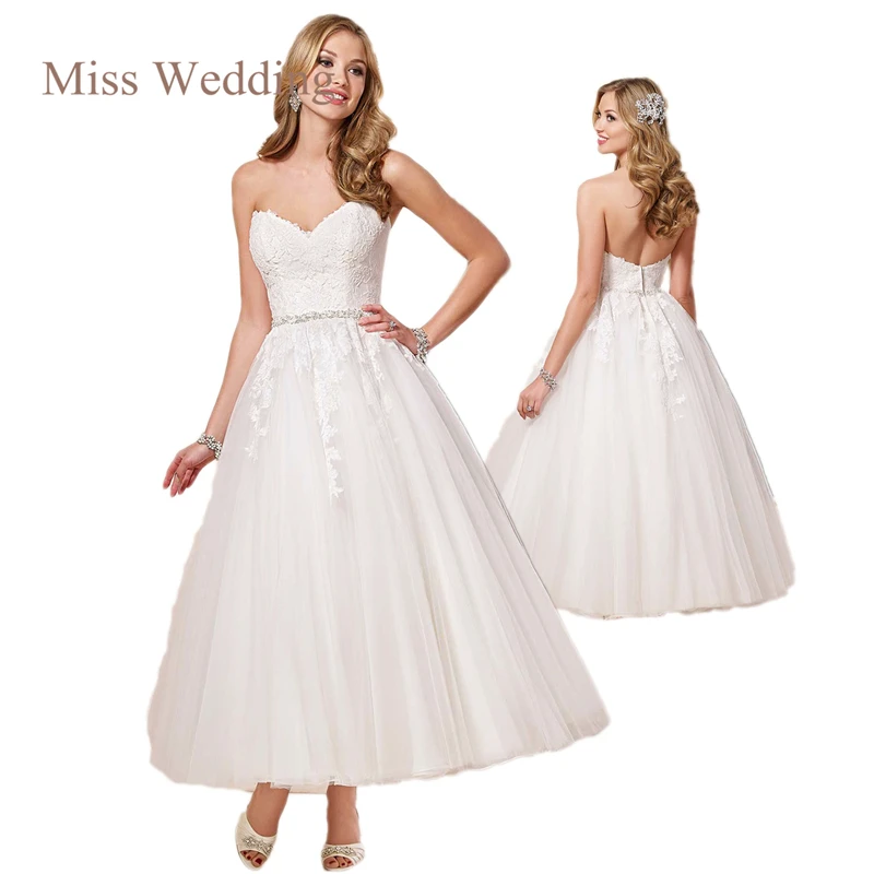 2020 Simple Ankle Length Wedding Dresses Spaghetti Appliques Lace Lace Ankle Length Wedding Dress