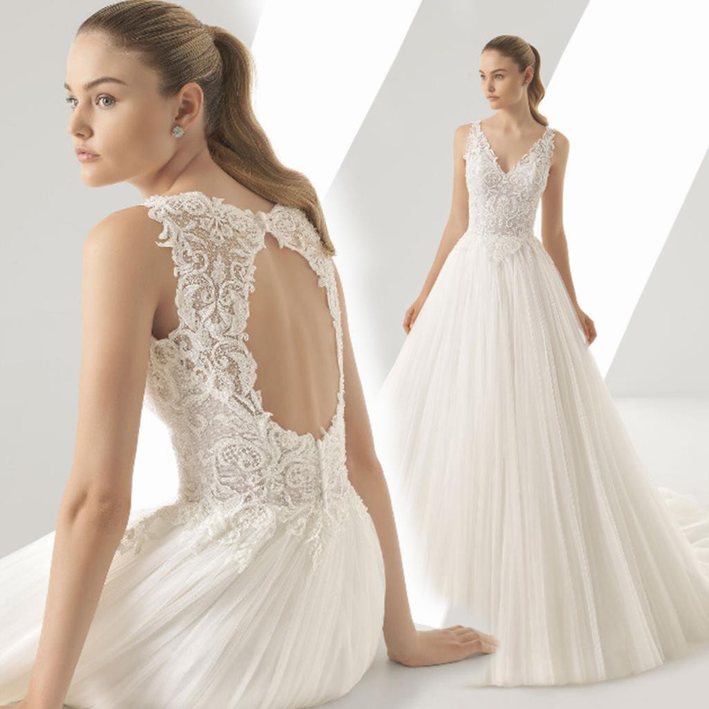 Lorie Princess Wedding Dress Appliqued Lace Backless Bride Gowns Lace Backless Princess Wedding Dresses
