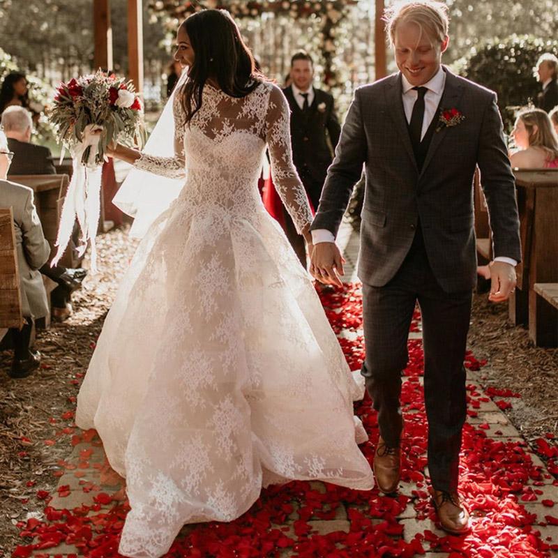 Jewel Neckline See Through Full Lace Ball Gown Wedding Dresses Lace Ball Gown Wedding Dress With Train