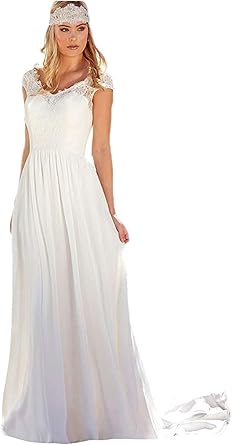 Lovebridal Beach Boho Wedding Dresses A Line Chiffon Lace Cap Lace Beach Boho Wedding Dress