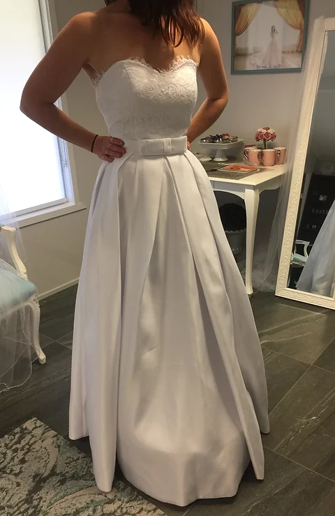 Bridal Wedding Dresses Style 6580 In Ivory White Color Lace Bodice Satin Skirt Wedding Dress