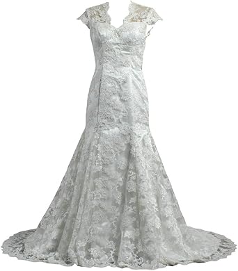 David S Bridal Lace Cap Sleeve Slim Gown With Keyhole Back And Lace Cap Sleeve Keyhole Back Wedding Dress