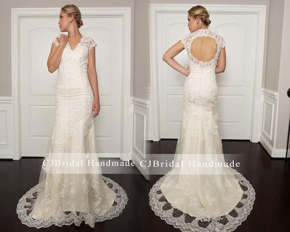 David S Bridal Collection Cap Sleeve Lace Wedding Dress W Keyhole Lace Cap Sleeve Wedding Dress Keyhole Back