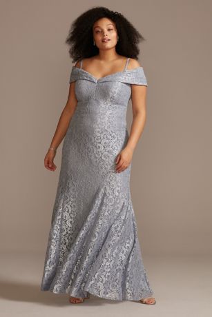 Cold Shoulder Glitter Lace Plus Size Mermaid Dress David S Bridal Lace Cold Shoulder Wedding Dress