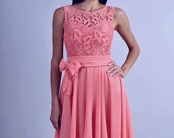 Coral Bridesmaid Dress Adorable Floor Length Top Lace Sheer Back Lace Coral Wedding Dress