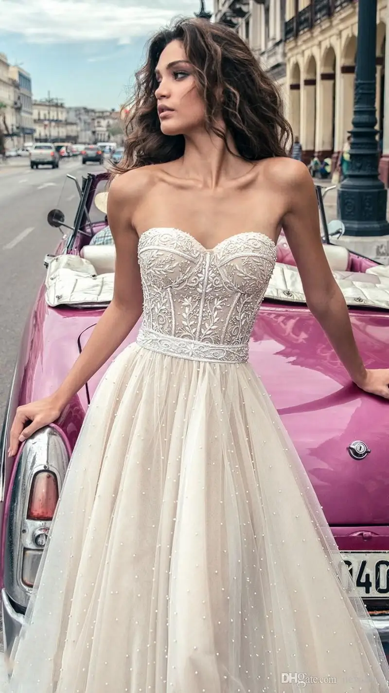 Yipeisha Bridal Dresses A Line Wedding Dresses Sheer Long Sleeves Lace Corset Wedding Dress