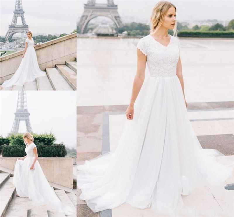 White Rustic Wedding Dresses Beach Tulle Lace Wedding Gown Long Lace Country Wedding Dresses