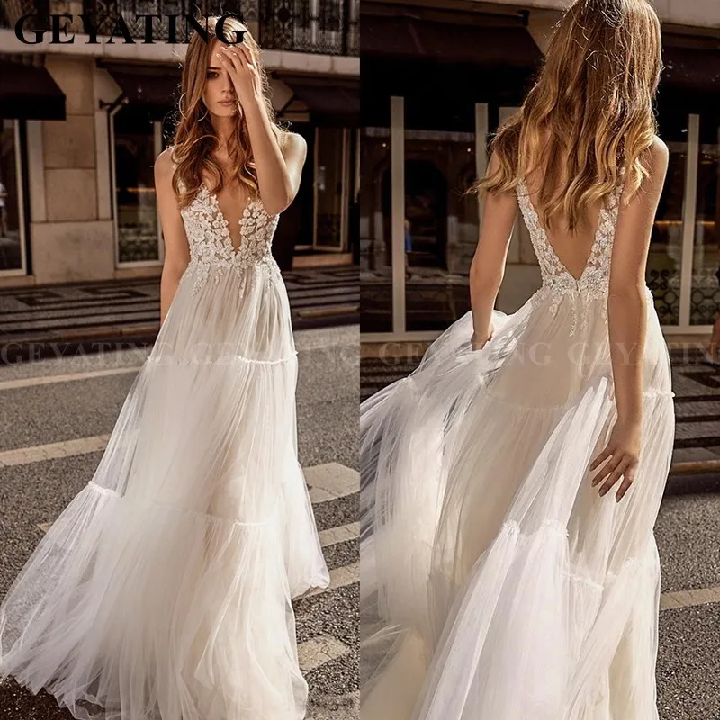 Wedding Dresses Deep V Neck Wedding Dress Open Back Bridal Gown Lace Deep V Wedding Dress