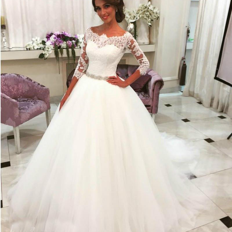 Floral Lace Tulle Long Sleeve Dream Wedding Ball Gown Vq Lace Dream Wedding Dresses
