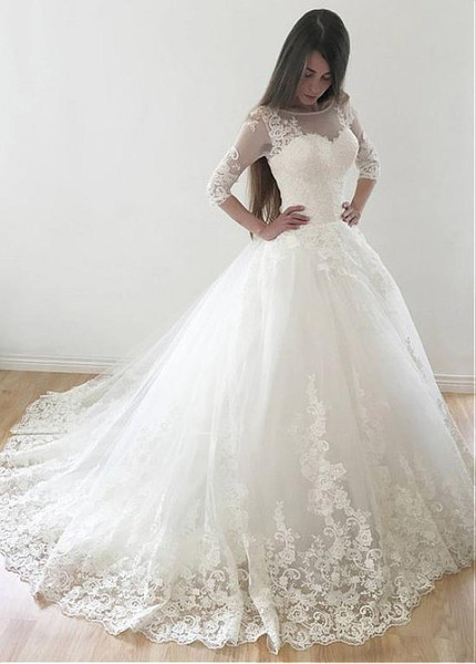 Lace Appliques Bateau Half Sleeves Ball Gown Wedding Dress Lace Half Sleeve Wedding Dress