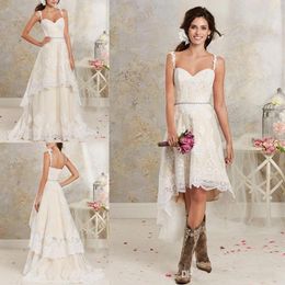 High Low Country Wedding Dresses With Cowboy Boots 2017 Lace High Low Country Wedding Dresses