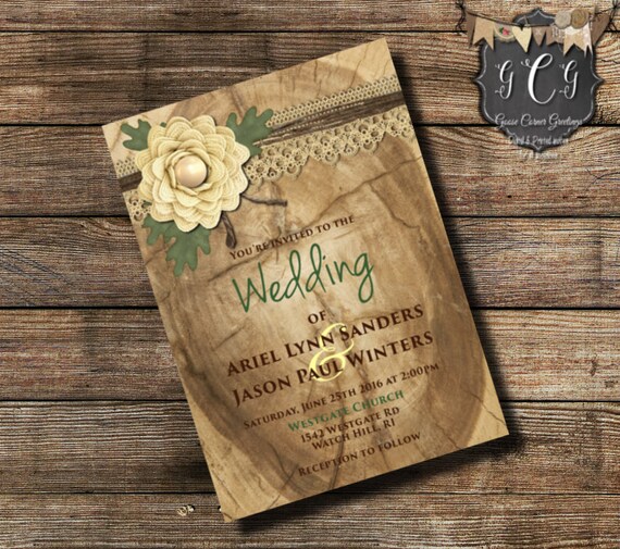 Rustic Wood Wedding Invitation Rustic Invites Wood And Lace Lace Invitations Wedding