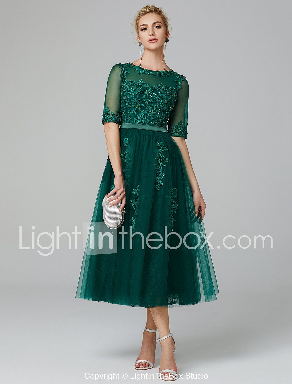 A Line Sparkle Green Wedding Guest Formal Evening Dress Illusion Lace Light Green Wedding Dress