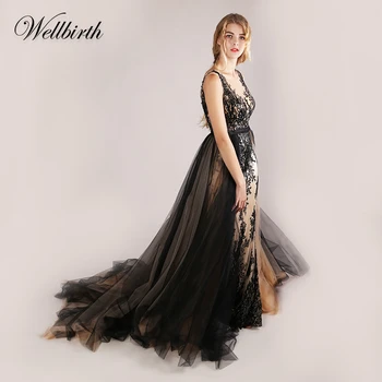 Black Long Sleeves Prom Dress With Lace Long Prom Dress With Lace Long Black Wedding Dresses