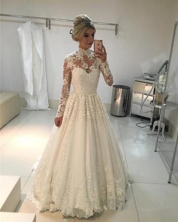 Vintage Long Sleeve Wedding Gown Fashion Dresses Lace Long Sleeve Wedding Dress Vintage