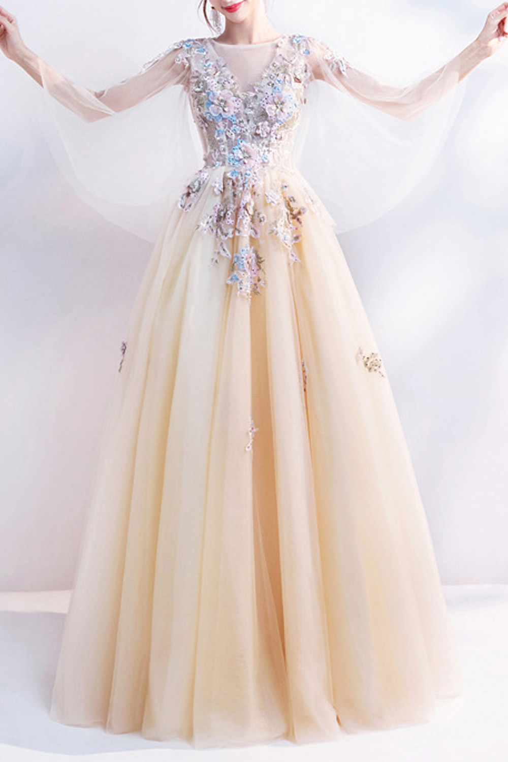 Loose Sleeve Scalloped Tulle Boho Wedding Gown Marie Bohemian Lace Loose Wedding Dress