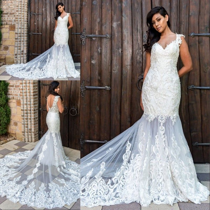 Elegant Lace Mermaid Wedding Dresses 2020 Sheer Cap Sleeves Lace Lace Mermaid Cap Sleeve Wedding Dress