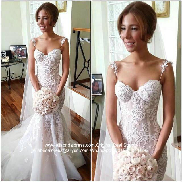 China Real Champagne Wedding Dress Lace Tulle Mermaid Pink Wedding Lace Mermaid Lace Pink Wedding Dress