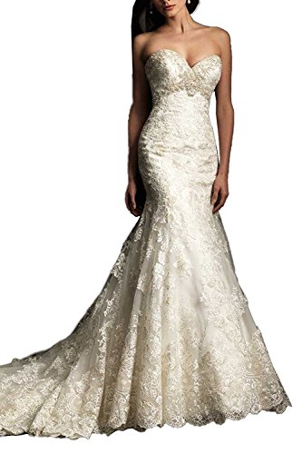 Lorie 2020 New Mermaid Wedding Dresses Lace Appliques Strapless Lace Mermaid Strapless Wedding Dresses