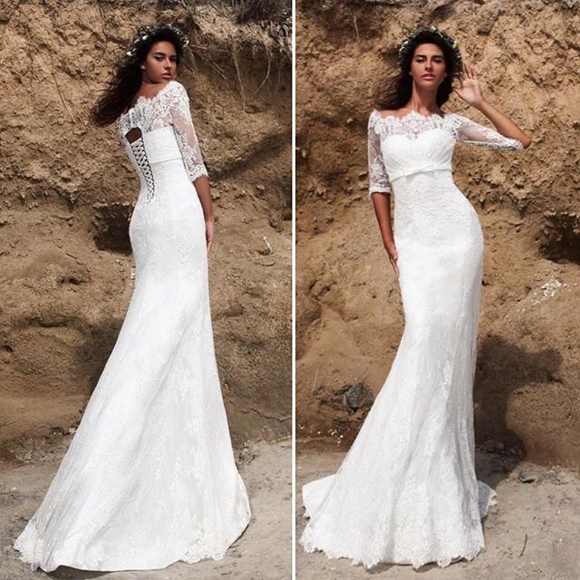 The Angelique Vintage Style Off Shoulder Antique Lace Mermaid Lace Mermaid Style Wedding Dresses