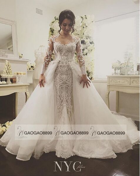 Chady 2019 High Slit Lace Mermaid Wedding Dresses With Detachable Lace Mermaid Wedding Dress With Detachable Skirt