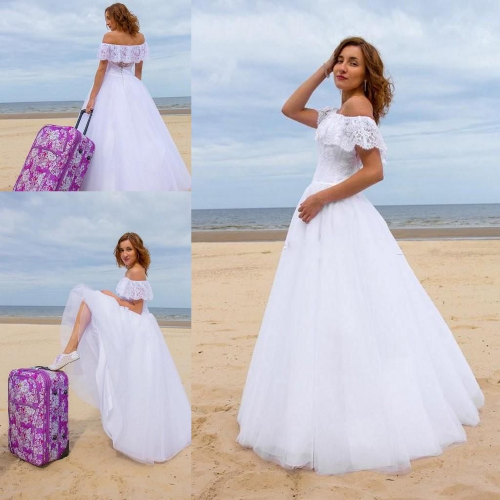 China Off Shoulder Bridal Ball Gowns Lace Tulle Custom Beach Boho Lace Off The Shoulder Beach Wedding Dress