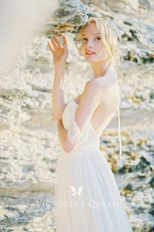 Sexy Pearls Off Shoulder Beach Wedding Dress With Wrap Lace Beads Lace Off The Shoulder Beach Wedding Dress