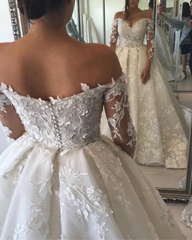 Vintage Lace Long Sleeves Wedding Dress Off Shoulder Ball Gown Lace Off The Shoulder Long Sleeve Wedding Dress