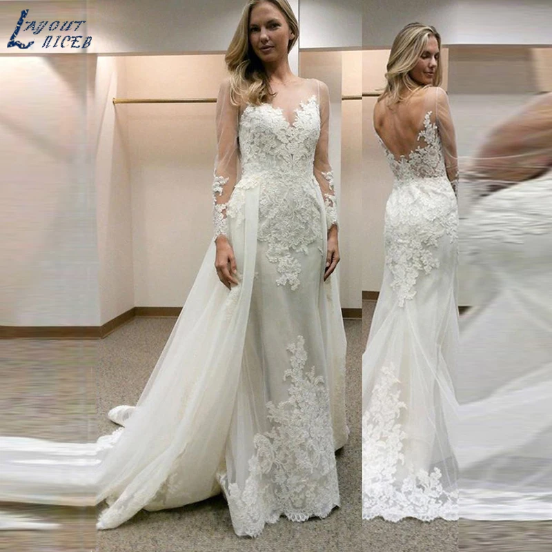 Sexy Open Back Mermaid Lace Wedding Dresses With Long Sleeves Lace Open Back Wedding Dress Sleeves
