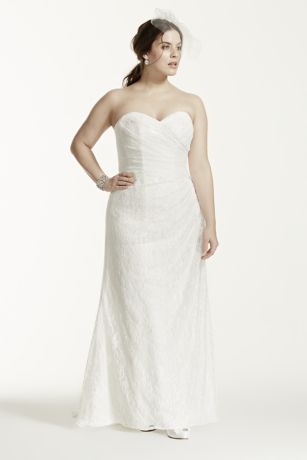 Strapless Lace Over Satin Plus Size Wedding Dress David S Bridal Lace Over Satin Wedding Dress