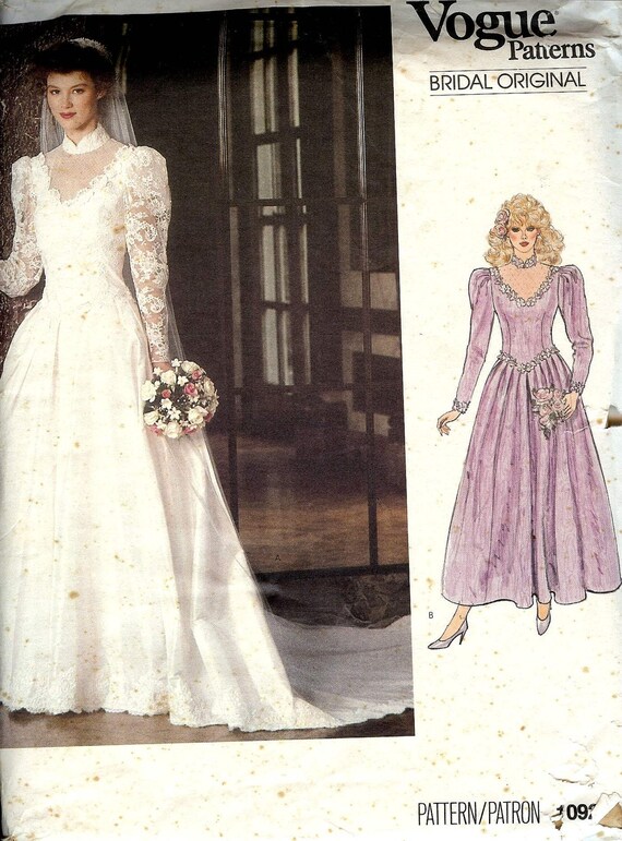 Vogue 1092 Wedding Dress High Neckline Lace Overlay Shaped Etsy Lace Overlay For Wedding Dress