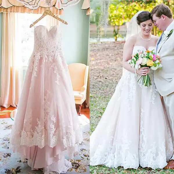 27 Most Beautiful Pastel Wedding Dresses Weddingomania Lace Pastel Pink Wedding Dress