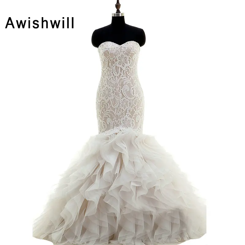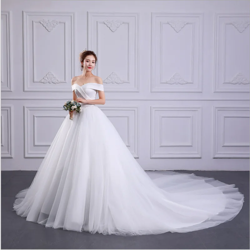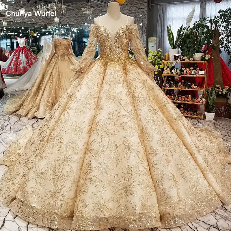 Ls31270 Luxury Golden Lace Pleat Wedding Dress Off Shoulder Lace Pleated Wedding Dress