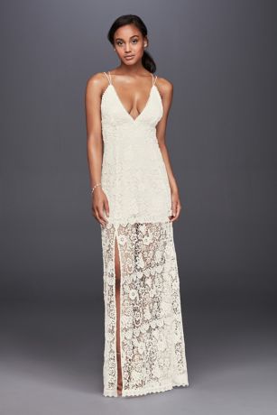 Lace Sheath Wedding Dress With Plunging Neckline David S Bridal Lace Plunging Neckline Wedding Dress