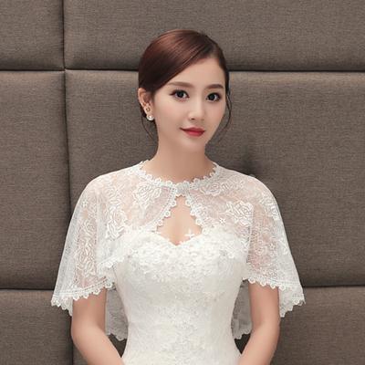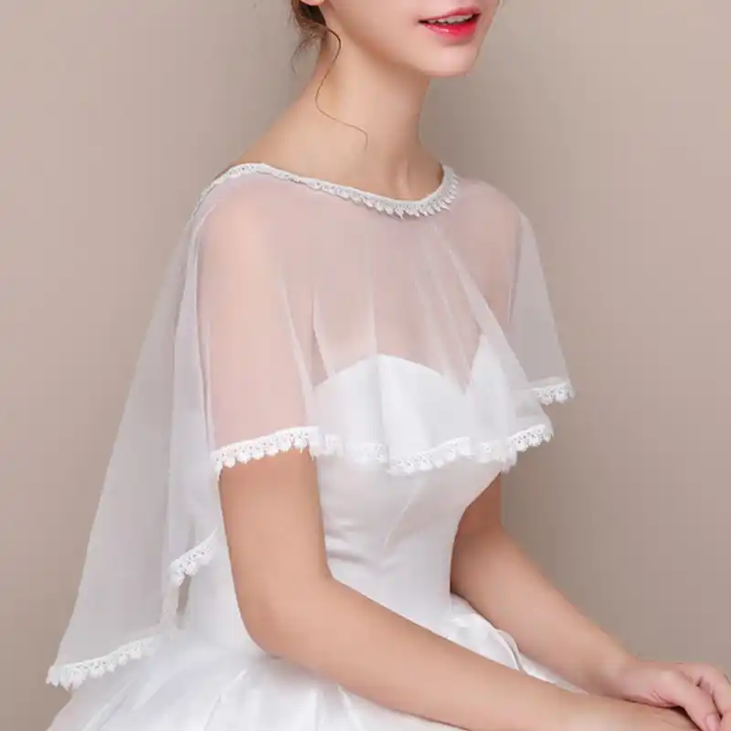 Wedding Bridal Vintage Sheer Tulle Cape Floral Lace Trim Pullover Lace Plus Size Wedding Dress With Trimmed Capelet