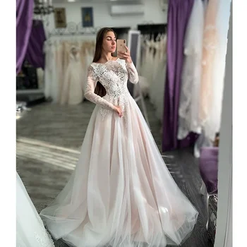 Vintage Illusion Applique Top Lace Long Sleeve Best Wedding Dress Lace Prettiest Wedding Dresses
