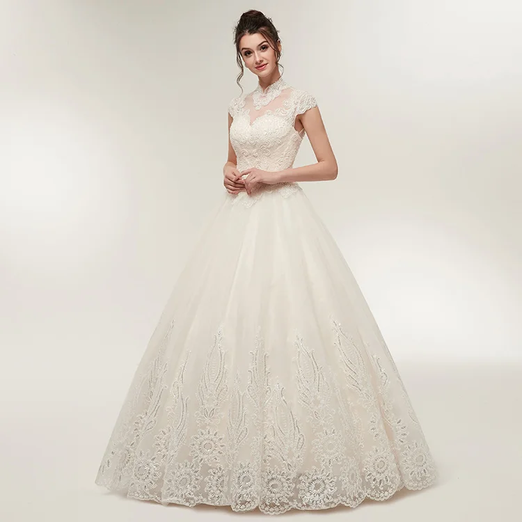 China Sweetheart Princess Wedding Dress Muslim Long Sleeves Lace Lace Princess Wedding Dress
