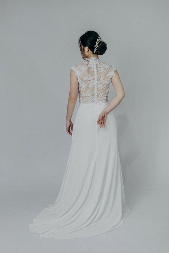 Bridal Wedding Dresses Style Mb3024 In Ivory Blush Or White Color Lace Sheath Wedding Dress With Sleeves