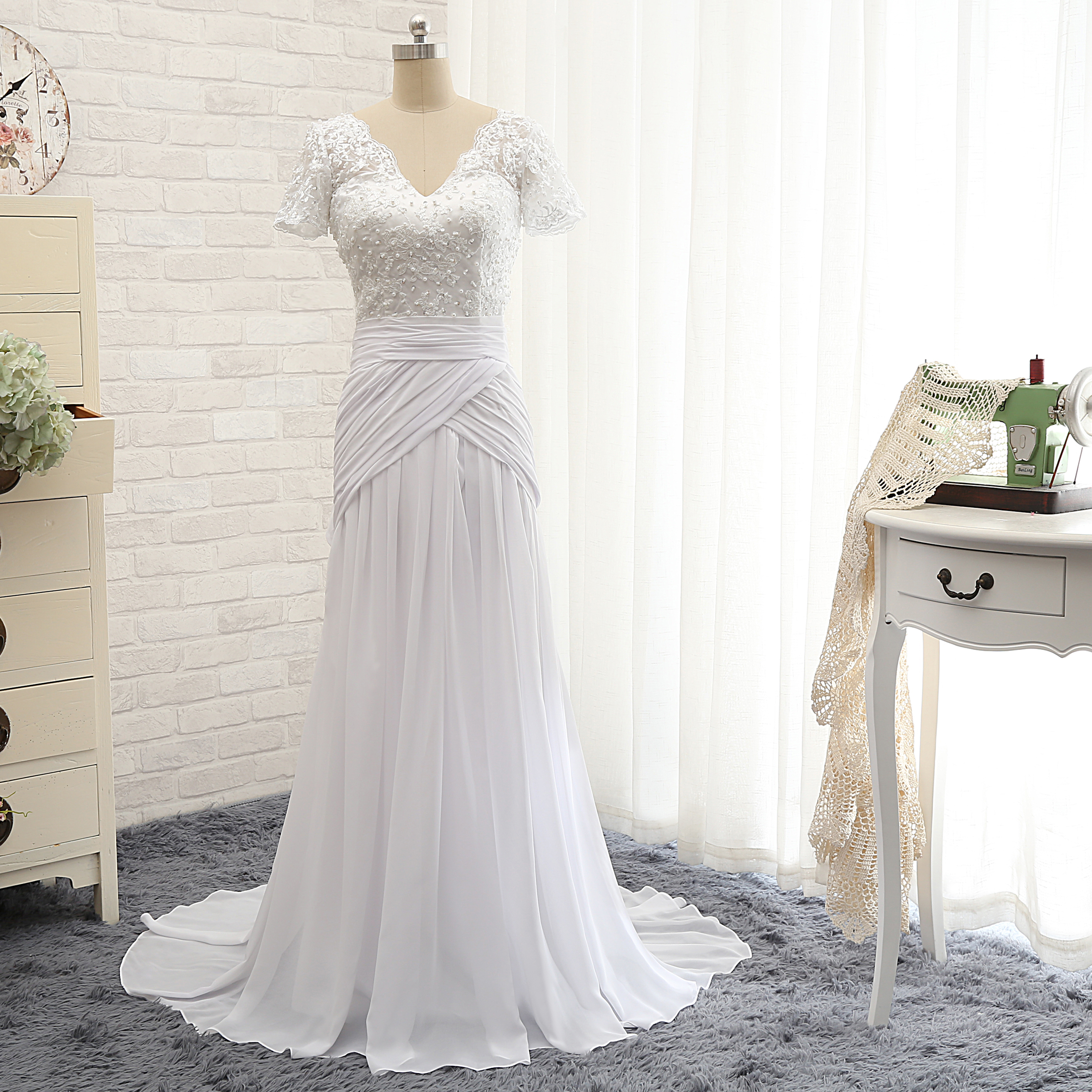 Short Sleeves Mermaid Wedding Dress White Short Sleeves Lace Lace Short Sleeve Wedding Dress
